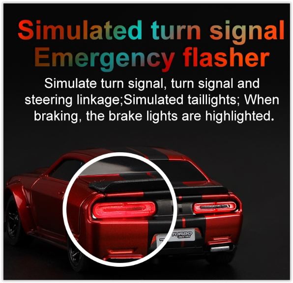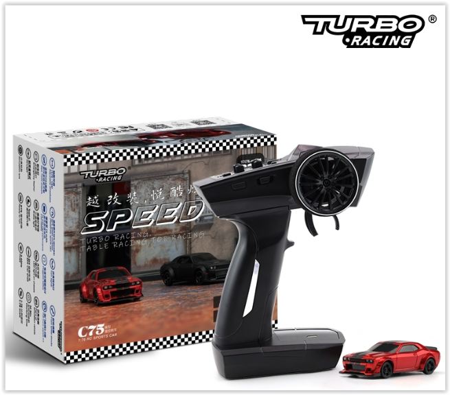 Il sistema radio Turbo Racing 2.4 GHz consente la presenza di fino a cinque giocatori contemporaneamente. Ogni carica può durare fino a 40 minuti. Ha uno sterzo proporzionale preciso, come ci si aspetterebbe da auto RC più grandi, e si ricarica come il tuo smartphone utilizzando la connessione Type C. Divertimento assicurato per gareggiare con amici e familiari in casa, in ufficio con i colleghi o praticamente ovunque tu possa immaginare!