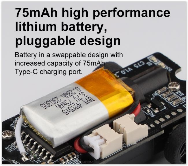 Inoltre, troverai una batteria sostituibile allo stesso modo dei modelli di scala più grande. Se l’autonomia della batteria con capacità aumentata non ti basta, puoi semplicemente sostituirla con un’altra carica e il divertimento può continuare.