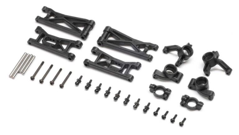 Il set di bracci e mozzi per la Losi Micro-B include 2 bracci anteriori e 2 posteriori, mozzi posteriori, fuselli anteriori, porta fuselli anteriori, perni a sfera, perni cerniera e dadi. Vanta un design delle sospensioni ispirato alle competizioni, basato sui veicoli della serie 22.