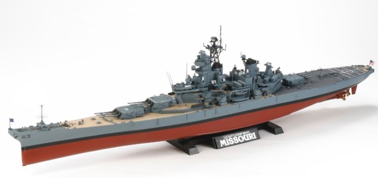 The USS Missouri (BB-63) was the third ship of the Iowa-class and was commissioned in 1944. During the Pacific War, she supported attacks on Kyushu and Okinawa and then participated in actions such as the bombardment of Muroran in Hokkaido. It is a well-known fact that the signing ceremony of Japan’s surrender documents took place on the Missouri’s decks on September 3, 1945. Following the end of the Korean War, the Missouri was mothballed at the reserve fleet anchorage but was refitted with, various, modern equipment to rejoin the U.S. Navy in 1986. Following Iraq’s invasion of Kuwait, the Missouri and her sister ship Wisconsin were deployed to the Middle East and she helped conduct the first firing of Tomahawk cruise missiles in combat during the opening stages of the Gulf War. The Tamiya model kit faithfully depicts the Missouri as she appeared in 1991. New parts have been tooled to update the kit.