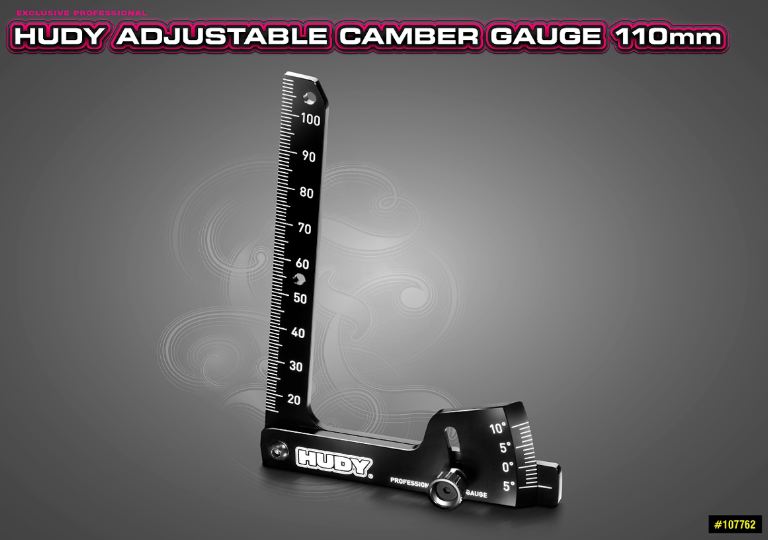 Il calibro di camber regolabile HUDY è disponibile in due alternative di dimensioni 80 mm e 110 mm tra cui scegliere per tutte le varie bilance per auto RC.
