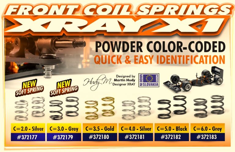Ultimate-match front coil shock springs for pan car front suspension offer an additional range of choices to fine-tune your car. Powder color-coded for quick & easy identification. Gold color. Set of 2.