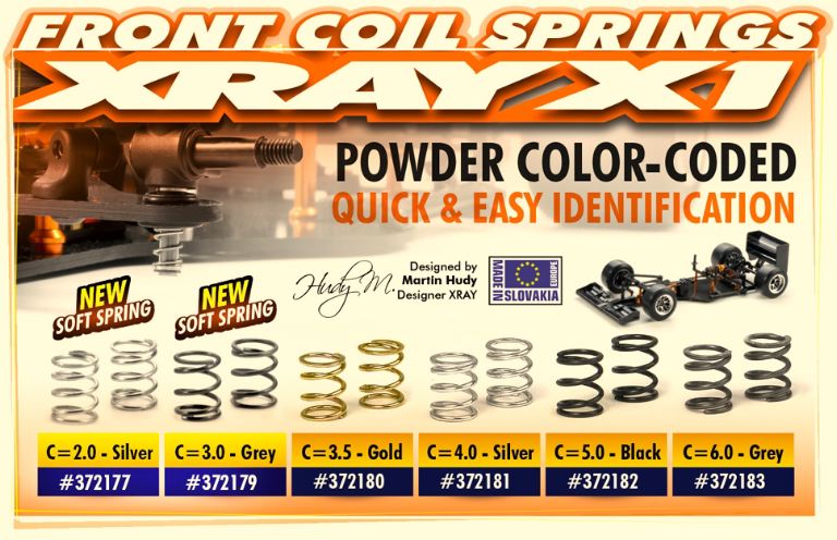Ultimate-match front coil shock springs for pan car front suspension offer an additional range of choices to fine-tune your car. Powder color-coded for quick & easy identification. Silver color. Set of 2.