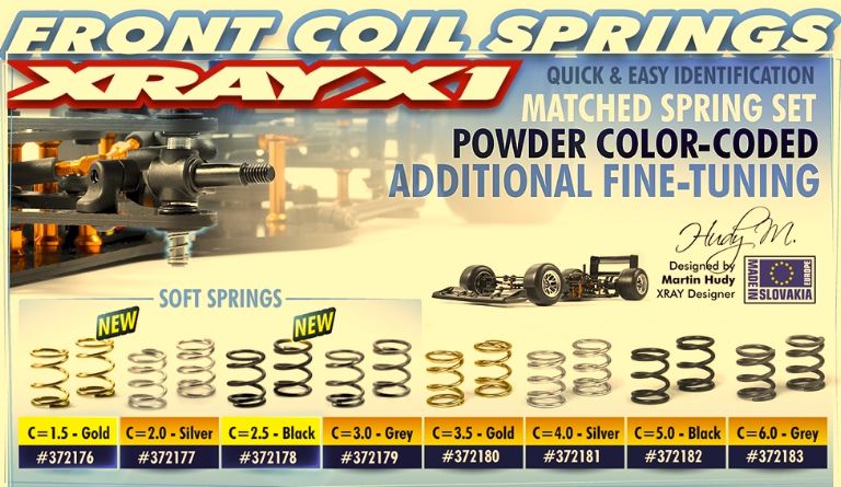 Ultimate-match front coil shock springs for pan car front suspension offer an additional range of choices to fine-tune your car. Powder color-coded for quick & easy identification. Grey color. Set of 2.