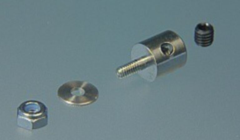 Morsetti ferma barre con chiusura a vite in alluminio sono progettati per una stretta connessione regolabile tra asta di spinta e servo (con spessore 2,5 mm) senza saldatura.