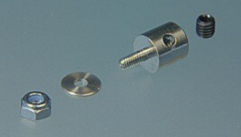 Morsetti ferma barre con chiusura a vite in ottone sono progettati per una stretta connessione regolabile tra asta di spinta e servo (con spessore 3 mm) senza saldatura.