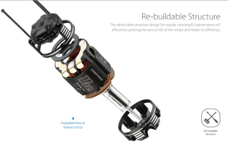 Il Design conta. XERUN V10 G3 È un motore appositamente progettato per le corse di altissimo livello. Il RMP del motore G3 Stock è significativamente migliorato, i KV e la coppia sono migliorati rispettivamente del 16% e del 4%, rispetto al motore V10 G2 Stock.