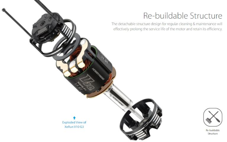Il Design conta. XERUN V10 G3 È un motore appositamente progettato per le corse di altissimo livello. Il RMP del motore G3 Stock è significativamente migliorato, i KV e la coppia sono migliorati rispettivamente del 16% e del 4%, rispetto al motore V10 G2 Stock.