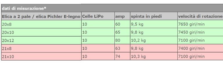 – modelli di volo 3D fino a 5,0 kg / – modelli acrobatici fino a 6,5 ??kg / – sport/trainer fino a 10,0 kg