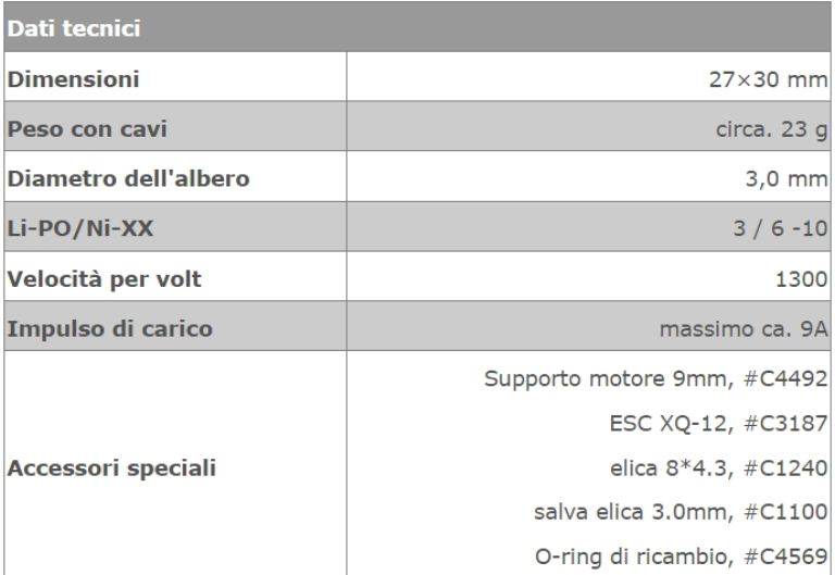 Questo motore è ottimizzato per funzionare con una batteria LiPo da 2S (7,4V).