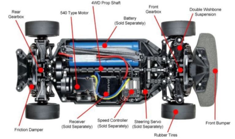 Sono inclusi set adesivi per riprodurre i numerosi sponsor e le sezioni rosse della livrea. Il modello si basa sul telaio TT-02 di semplice costruzione e limitata manutenzione.