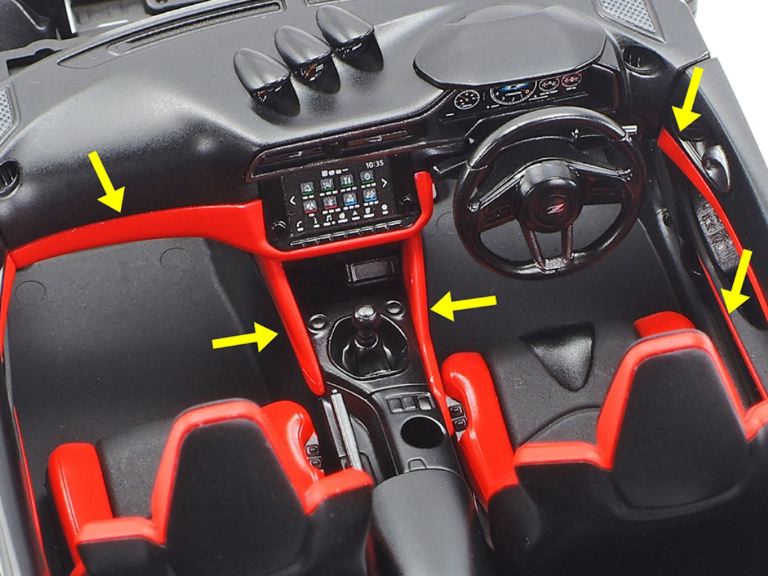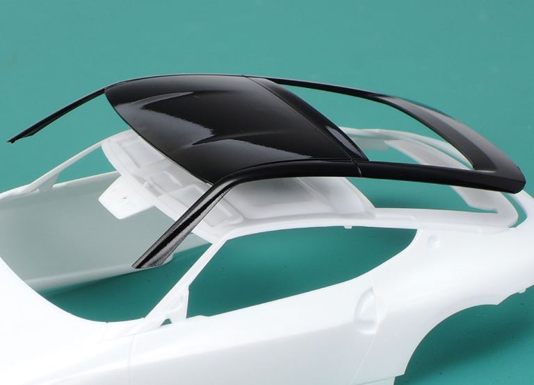 Il tetto stampato separatamente (da verniciare in nero per la livrea Nissan Z) facilita la procedura di verniciatura.