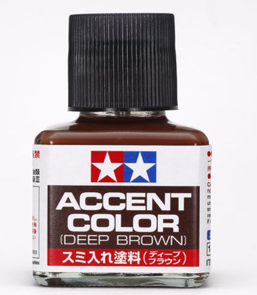 Le parti in plastica possono diventare fragili quando si utilizzano i colori accentati Tamiya Panel Line. Evitare l’uso su parti mobili e fare attenzione quando si applica su aree portanti. Applicare sulla mano di fondo di vernice o vernice acrilica. Le vernici Accent Color possono danneggiare il rivestimento di base sottostante. Prova prima di applicarlo sul modello. Fare attenzione quando si applicano i colori dello strato di base piatto poiché le vernici Accent Color possono permeare più facilmente.