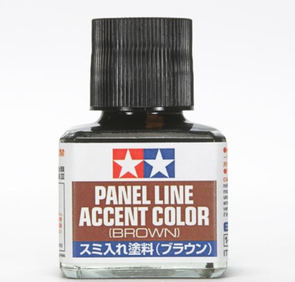 Plastic parts may become brittle when using Tamiya Panel Line accent colors. Avoid using on movable parts and take care when applying to load-bearing areas. Apply over base coat of lacquer or acrylic paint. Accent Color paints may damage underlying base coat. Test before applying it onto the model. Take care when applying on flat base coat colors as Accent Color paints may permeate more readily