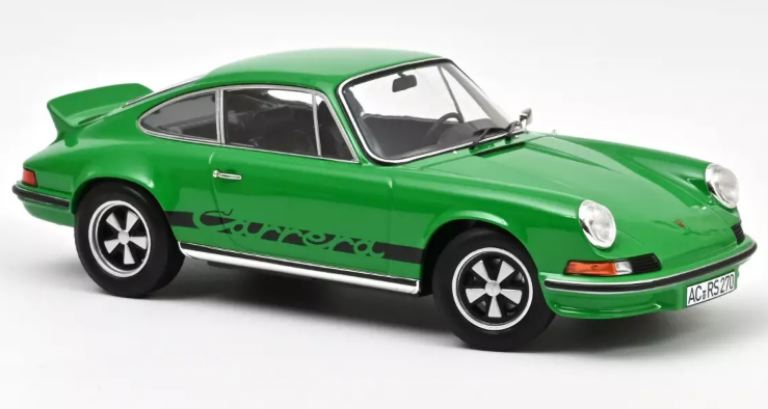La Porsche 911 Carrera RS è sinonimo di molti superlativi. Ai suoi tempi, era la vettura di produzione tedesca più veloce e la prima ad essere dotata di ali anteriori e posteriori direttamente dalla fabbrica. Deve il suo soprannome Entenbürzel a quest’ultime. Inizialmente pensata come veicolo di omologazione con una produzione di 500 unità, Porsche fu sorpresa dal proprio successo e alla fine vendette 1580 veicoli, di cui 1308 erano la versione Touring rappresentata qui.
