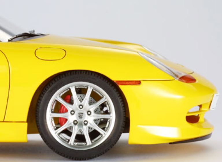 Tamiya ha ricreato questa vettura sportiva epocale in scala 1/24. Lintricato motore è visibile anche dalla parte inferiore del telaio. La superficie superiore presenta una costruzione dellala posteriore in quattro parti, che migliora la raffinatezza del design della carrozzeria. Il kit viene fornito anche con lemblema Porsche, autenticamente ricreato in metal transfer. Linterno del dettagliato abitacolo include un sedile in moquette per il pavimento. Cerchi realizzati con effetto metal plated per un ulteriore realismo cosi come le parabole luci, specchietti retrovisori esterni e marmitta.