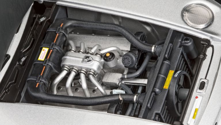 La Porsche 928 è stata introdotta nel 1977. Per ridurre il peso, le porte, il cofano e i parafanghi sono stati realizzati in alluminio. I fari anteriori erano ripiegati all’indietro in posizione di riposo. La lussuosamente equipaggiata Gran Turismo aveva un motore V8 da 240 CV, che però era diverso da quello della Porsche 911 che si trovava davanti.