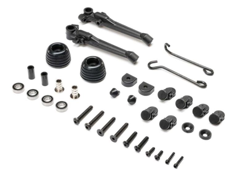 Set completo di barre antirollio per la Losi Promoto-SM, compatibile anche con la Losi Promoto-MX. Realizzato in plastica stampata a iniezione, bulloneria in metallo e cuscinetti a sfera. La barra antirollio è stata rialzata per consentire un maggiore angolo di piega ed è realizzata in gomma per ridurre il rumore. La barra è supportata da 2 cuscinetti.