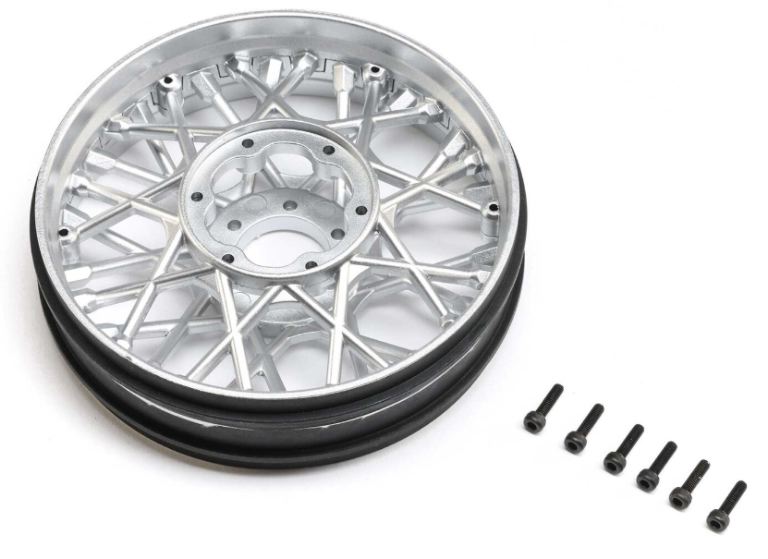 Questa cerchio anteriore di ricambio in cromo satinato è realizzata con plastica stampata a iniezione e componenti metallici per la Losi Promoto-SM. La ruota può essere utilizzata anche sulla Losi Promoto-MX.