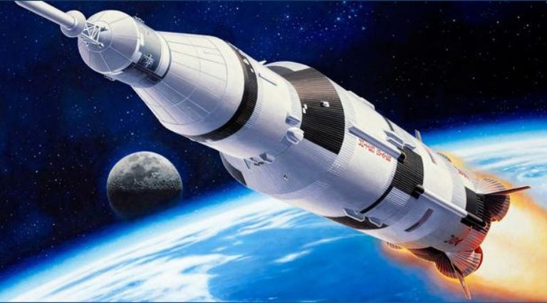 At 0932hrs on 16th July 1969 the giant Saturn V rocket was launched from the launchpad at Cape Canaveral on the most important journey in the history of mankind. The giant Saturn V consisted of three main stages, was 110 meters (361 ft) high and weighed 3,000 tons. It could carry a payload of 50 tons and reach a speed of 11.2 km/second (25050 mph). The 394,000 km ( 244,800 mile) journey to the moon took 72 hours. After achieving low Earth Orbit, the upper assembly with the Apollo Capsule received a final push from the third stage rocket thrusters to achieve the speed required for its flight to the moon. Later the Apollo module broke away from the rocket, turned and pulled the Lunar Module from its protective covering. Coupled together like this, the combination eventually reached the Moon and entered Lunar orbit. After several Lunar orbits the Lunar Module with the astronauts N. Armstrong and E. Aldrin on board separated from the Command Module in which only the astronaut M. Collins remained. With two firings of the retro rockets the Lunar Module commenced its final approach into the Sea of Tranquillity . This historic event will be remembered for eternity.