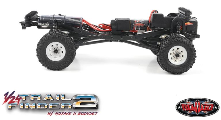 Il telaio RC4WD 1/24 Trail Finder 2 è composto da binari del telaio in alluminio lavorato a CNC, che formano una piattaforma rigida. I supporti delle sospensioni e le traverse sono attrezzati per capacità durevoli.