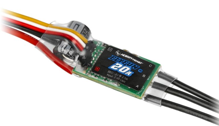 La nuova serie FlyFun V5 è stata ridisegnata da zero. Esternamente riconoscibile è il design minimalista, che riduce notevolmente il peso rispetto ai controllori con dissipatori di calore in alluminio massiccio. Questo regolatore offre ai piloti la più completa gamma di funzioni grazie ai componenti elettronici di alta qualità. Caratteristiche Tecnologia di ottimizzazione dell’efficienza di guida DEO Risposta morbida e rapida Maggiore efficienza, tempo di volo più lungo Temperatura di esercizio più bassa e funzionamento affidabile 3 diverse modalità di frenata,Effetto frenante regolabile Avviamento morbido regolabile (normale / morbido / molto morbido) Protezione da sottotensione LiPo regolabile (spento / 2,8V – 3,8V) Temporizzazione regolabile (0° – 30°) E molto altro ancora.