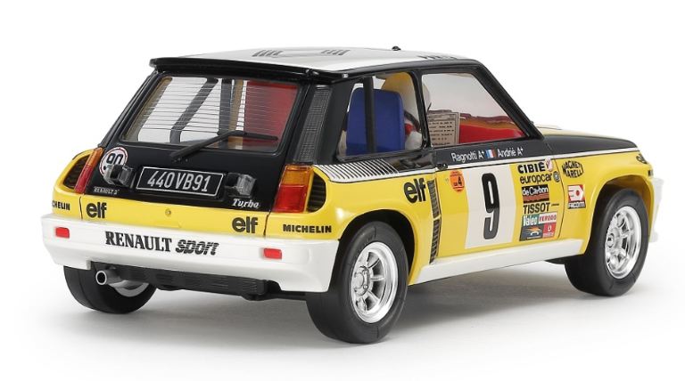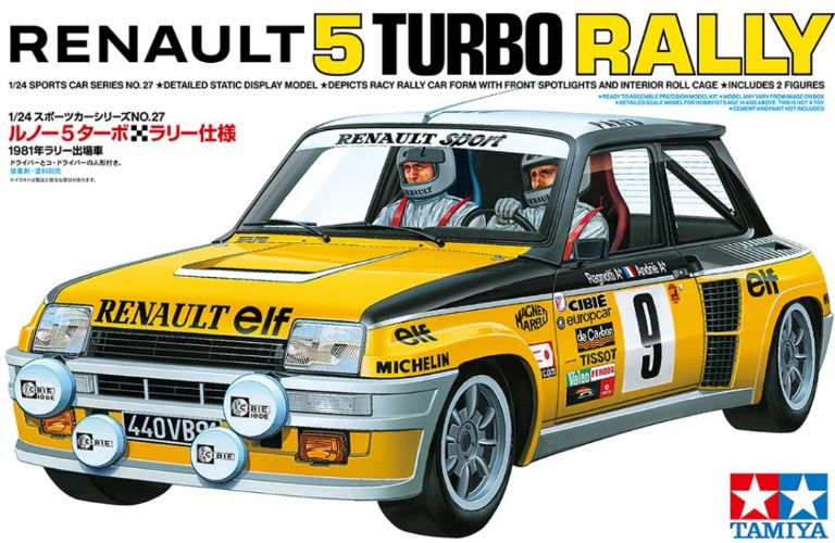 Con la nuova Renault 5 completamente elettrica presentata nel 2024 da Renault Tamiya presenta la ri-edizione aggiornata dellarticolo 24027 Renault 5 Turbo Rally (venduta originariamente nel 1982 e riprodotta nel 2011) con decalcomanie e manuale di istruzioni aggiornati. La Renault 5 Turbo era una versione speciale dellinimitabile Renault 5, sviluppata per le gare di rally.