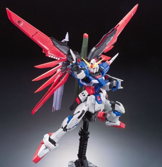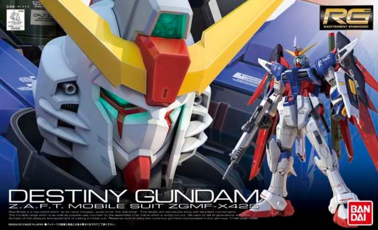 Lundicesima uscita per la serie RG è dedicata al protagonista della serie Gundam Seed Destiny. Il modellino di Destiny Gundam dispone di armi, parti intercambiabili e ottime articolazioni. Necessita di assemblaggio.