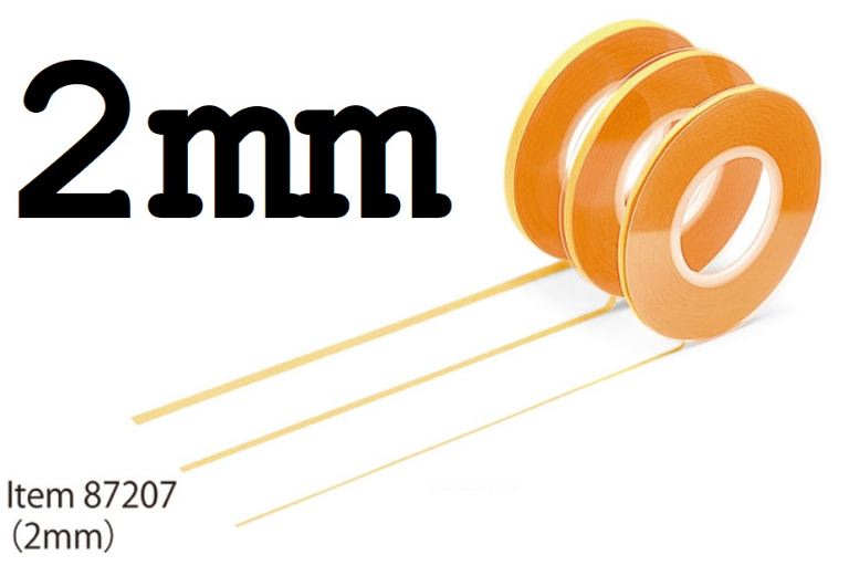 Nastro adesivo mascherante sviluppato per modelli in plastica. Caratterizzato da un’adesione superiore, ma con solo 0,08 mm di spessore, mantiene la flessibilità necessaria per coprire varie superfici non piatte. Con soli 2 mm di larghezza, è perfetto per l’uso sui finestrini dei modellini di auto, sui tettucci dei modelli di aerei e su altri lavori di pregio. Le piastre su entrambi i lati del nastro aiutano ad evitare che perda la sua forma o che la polvere e la sporcizia vi si attacchino. L’anima in plastica garantisce una produzione minima di polvere.
