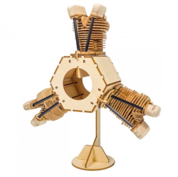 Riproduzione in scala di un motore a 3 cilindri da montare sul vostro aero modello elettrico. I cilindri sono disponibili nelle altezze di 35 mm, 50 mm e 65 mm. Possono essere utilizzati anche per riprodurre motori boxer e motori in linea. I cilindri fittizi sono forniti in kit di legno tagliato al laser con istruzioni dettagliate e illustrate. La costruzione lascia spazio sufficiente per progettare e dipingere i motori secondo i propri desideri.