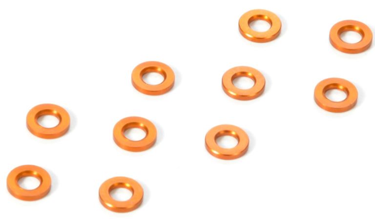 Alu shims 3x6mm size, 0.5mm thick. Orange color. Set of 10.