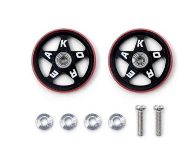 Copia di rotelle da 19mm in alluminio nella versione 5 razze prodotte in esclusiva per il mercato Koreano. Lerotelle sono nel colore nero e sono dotate di anello in plastica rosso. Dispongono di cuscinetti 520. Versione commemorativa del TKC25