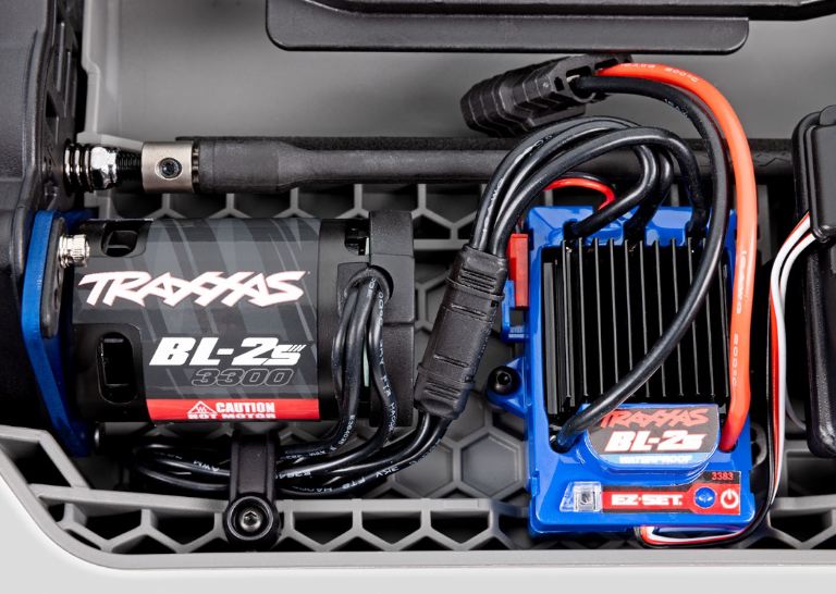 Il sistema di alimentazione Brushless BL-2 di Rustler 4X4 aumenta il divertimento con fino al 60% di velocità in più e un’accelerazione più rapida rispetto ai sistemi di alimentazione a spazzole comparabili. L’efficienza migliorata, i cuscinetti a sfera ad alta velocità e una ventola di raffreddamento interna consentono a Rustler 4X4 di funzionare batteria dopo batteria per un divertimento che dura tutto il giorno. Senza spazzole soggette a usura, il BL-2s 3300 kV è duraturo, affidabile e non richiede praticamente alcuna manutenzione. Il controllo elettronico della velocità impermeabile BL-2s racchiude potenti funzionalità come tre profili di guida separati, rilevamento di bassa tensione per batterie LiPo, Training Mode brevettato e protezione di spegnimento termico per prevenire il surriscaldamento. Il motore sensorless BL-2s da 3.300 kV con ventola di raffreddamento integrata offre elevate prestazioni brushless con una manutenzione quasi pari a zero.