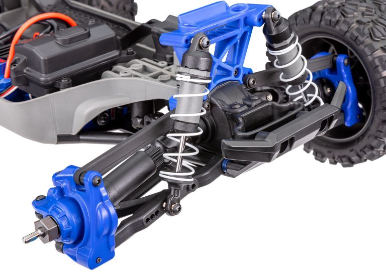 Il kit di aggiornamento Extreme Heavy Duty preinstallato di Rustler 4X4 sostituisce i componenti chiave della trasmissione e delle sospensioni con parti rinforzate realizzate per la massima resistenza e durata. Dai bracci delle sospensioni HD ai mozzi delle ruote in acciaio, questa è la trasmissione più potente mai offerta in un Rustler.