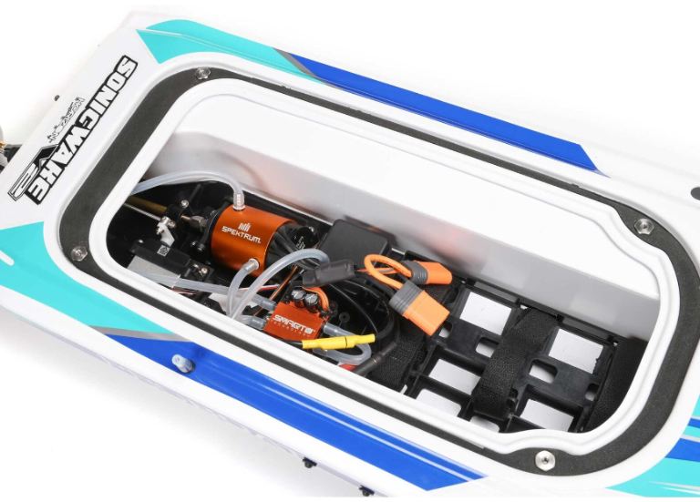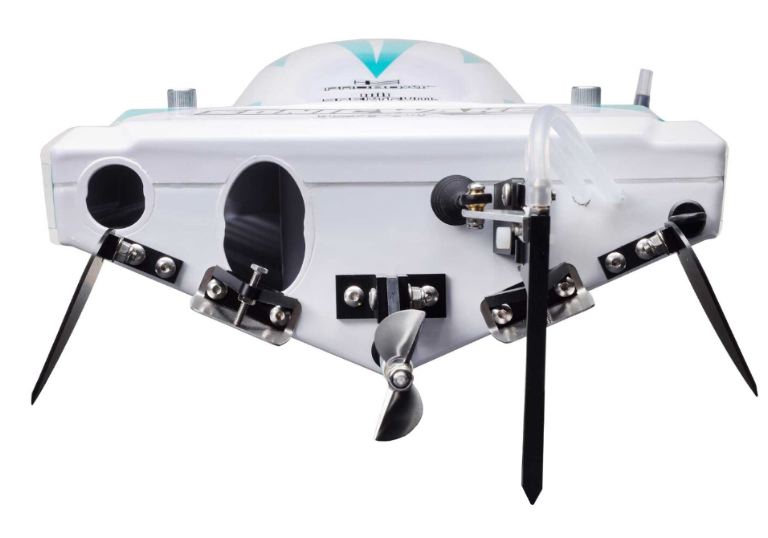 Progettato per essere il più stabile possibile con una funzione di auto-raddrizzamento se si capovolge basta qualche secondo e la camera esterna si riempirà di acqua raddrizzando il modello. Premi poi l’acceleratore e l’acqua esce dalla camera esterna mentre la barca avanza.
