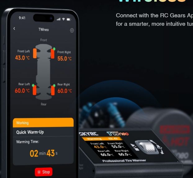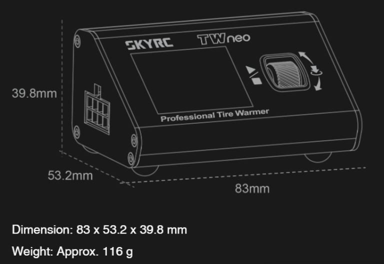 Il SkyRC TWneo è un termogomme all’avanguardia per veicoli RC che porta le tue gomme alla temperatura ottimale prima della gara. Con il controllo indipendente della temperatura per le gomme anteriori e posteriori, nonché sensori di alta precisione, il TWneo assicura una trazione perfetta fin dal primo giro. Tre modalità di riscaldamento (Riscaldamento Rapido, Riscaldamento a 2 Stadi e Riscaldamento a 3 Stadi) consentono un adattamento flessibile alle tue esigenze. La connessione Bluetooth all’app RC Gears consente un monitoraggio in tempo reale e una regolazione dei parametri direttamente dal tuo smartphone.