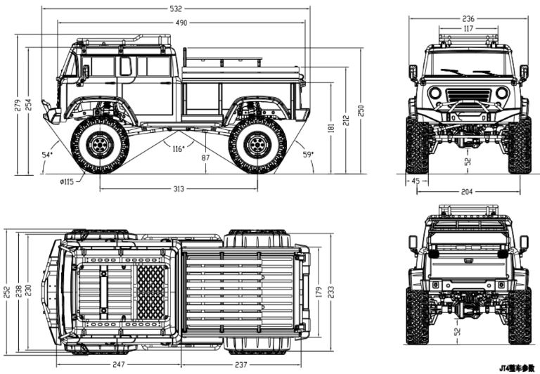 Il modello JT4 è nato negli anni ’50. Ha un telaio da fuoristrada molto potente. La struttura della carrozzeria non portante ha evoluto molti veicoli importanti in diversi campi. Può essere facilmente controllato sia che si tratti di militari o civili, rally a lunga distanza e viaggi fuoristrada.