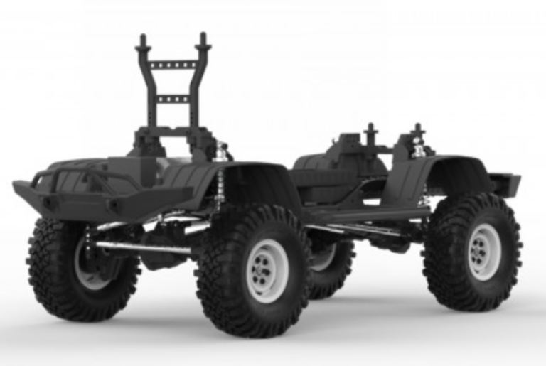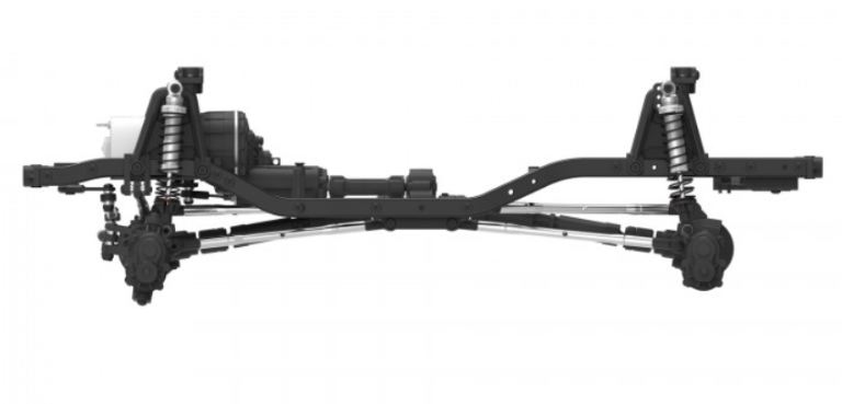 Il telaio JT4 utilizza una connessione multi-link in stile Panhard più simulata con il corpo del ponte e lo sterzo è installato sulla trave per simulare ulteriormente la posizione dello sterzo dell’auto e nasconderlo meglio. Per migliorare le prestazioni in salita e l’affidabilità del tirante, JT4 utilizza un tirante integrato in acciaio inox, che è direttamente collegato al prigioniero a sfera, eliminando la necessità di rondelle e viti da installare, e allo stesso tempo abbassa il baricentro del telaio.