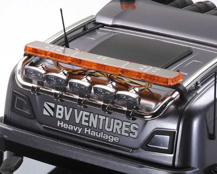 Le Unità di Controllo Multifunzionali Tamiya (vendute separatamente) offrono un funzionamento di luci, suoni e vibrazioni per accompagnare la tua esperienza con il camion radiocomandato. I suoni del motore sono stati registrati digitalmente da un camion reale e, insieme al clacson, al cambio di marcia e a molti altri suoni realistici, ti danno la sensazione di guidare un vero camion! I fari, le luci dei freni, la lampada antifog, le luci di emergenza e le frecce sono anche a portata di mano.
