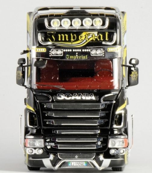 Il trattore pesante Scania Serie R disponibile con motore V8, è stato sviluppato sulla base delle attuali esigenze del mercato mondiale. I motori V8 SCANIA sono costruiti per svolgere i lavori più impegnativi e molto apprezzati in quanto robusti, reattivi ed efficienti. La Serie R Scania è progettata per soddisfare le massime esigenze in termini di risparmio di carburante e affidabilità. Il design esterno conferisce ai veicoli un aspetto imponente sulla strada ed è considerato il numero uno per la realizzazione di fantastici SHOW TRUCKS, i famosi trattori decorati. Lo straordinario stile dellesterno è abbinato a nuovi interni esclusivi che offrono un eccezionale comfort per il conducente e una vasta gamma di opzioni di colori e materiali. Il nostro modello viene inoltre completato da un fantastico foglio decals e da un accurato foglio di adesivi metallizzati, già pronto per lapplicazione, per una corretta finitura della motrice. Inoltre la confezione contiene nuove parti in plastica cromata per rendere il modello particolarmente realistico.