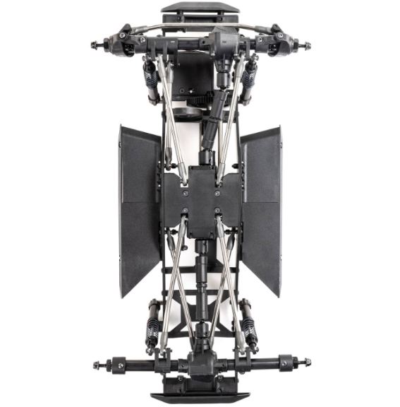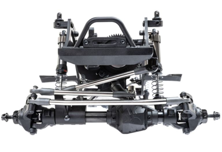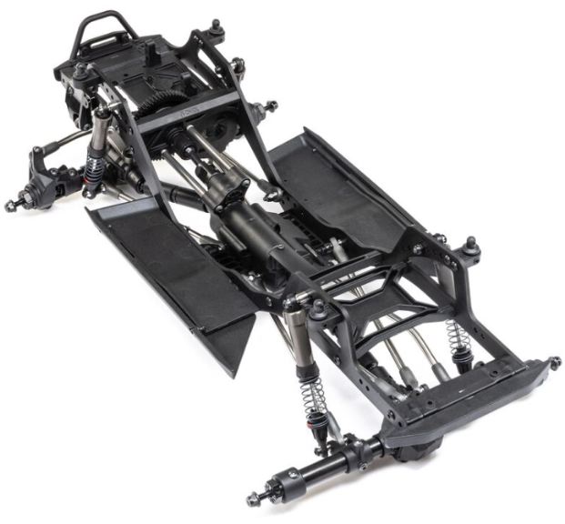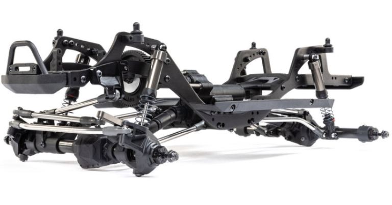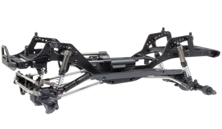 Il telaio Pro leggero e altamente regolabile è un design specifico per comp ottimizzato per arrampicata, salita laterale e breakover. Gli assali in più pezzi sono costruiti con tubi in acciaio e possono ospitare un servo montato sul telaio (CMS) o montato sull’asse (AMS). Il supporto del motore posiziona il motore in basso e in avanti nel telaio per una migliore distribuzione del peso. Consente inoltre di ridurre l’assale posteriore tramite servo o di bloccare manualmente l’assale posteriore in 1:1 o underdrive.