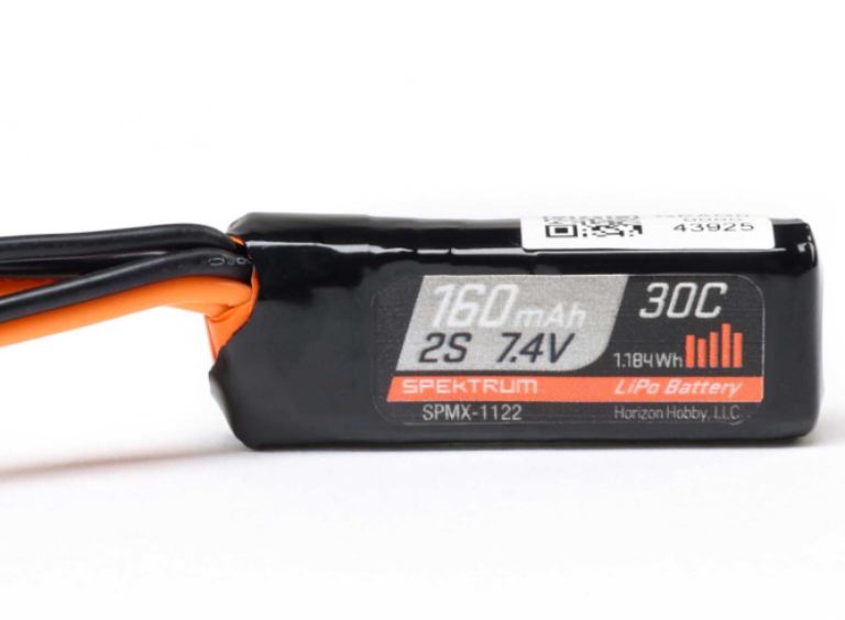 Batteria LiPo Spektrum 2S 7.4V molto piccola e leggera, con una capacità di 160mAh e connettore PH2.0.