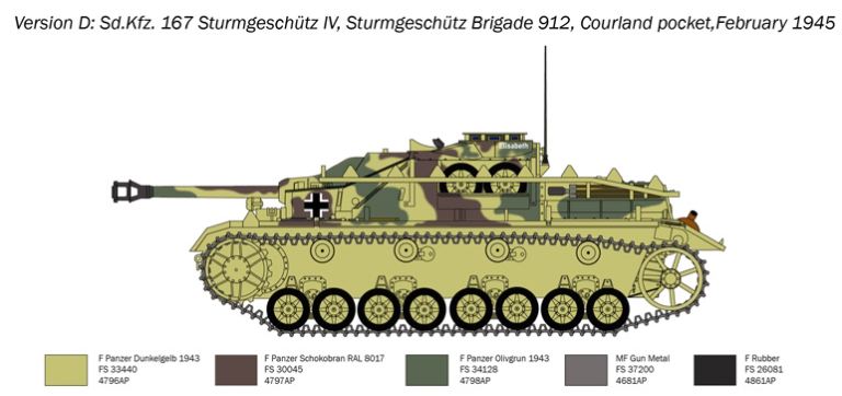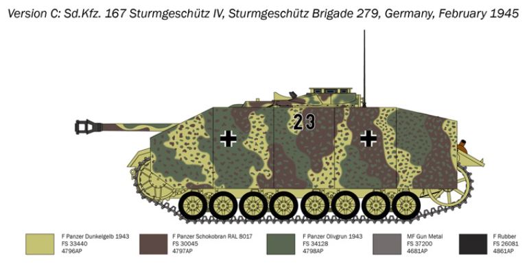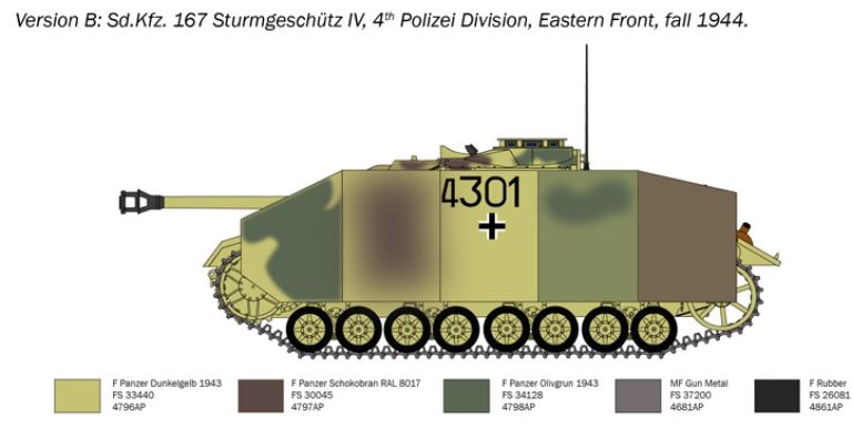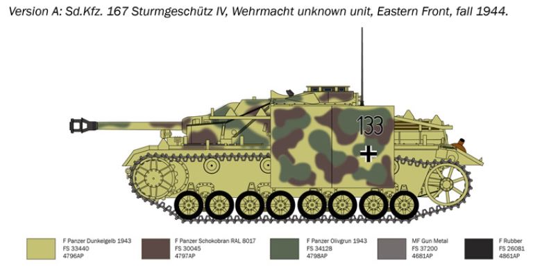 Lo Sturmgeschütz IV venne realizzato sullo scafo del carro armato medio Panzer IV per dotare, nelle fasi avanzate della Seconda Guerra Mondiale, lesercito tedesco di un cannone dassalto in grado di essere efficace anche come cacciacarri. Lo Stug IV era armato con un pezzo Stuk40 da 75 mm L/48 ad alta velocità iniziale installato in casamatta, protetto da un mantelletto corazzato, in grado di perforare le blindature dei principali mezzi corazzati nemici. Distribuito ai reparti nei primi mesi del 1944 andò a integrare e, spesso sostituire, il cannone dassalto Stug III che aveva visto subire nel corso del 1943 un repentino calo di pezzi prodotti per via delle sempre più frequenti incursioni di bombardieri alleati sulle aree industriali tedesche. Largamente impiegato, lo Stug IV venne utilizzato dai reparti corazzati e dalle aliquote controcarro della Wehrmacth dove, grazie al suo basso profilo, dimostrò di essere particolarmente difficile da identificare.