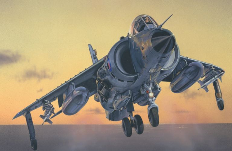 Il British Aerospace Sea Harrier è un caccia con caratteristiche VTOL/STOVL (Short take-off and vertical landing) sviluppato per equipaggiare i reparti di volo imbarcati della Royal Navy Britannica. Entrò in servizio attivo tra la fine degli anni 70 e linizio degli anni 80 con il ruolo principale di difesa aerea della flotta. Nel 1982, imbarcato sulla HMS Invincible e sulla HMS Hermes partecipò alla guerra delle Falkland dimostrando la sua efficacia operativa. Sebbene dotato di caratteristiche di volo subsoniche, decisamente inferiori rispetto agli aerei avversari come il Mirage III, era estremamente manovrabile ed affidabile in ogni condizione operativa. Il Sea Harrier era inoltre dotato di un buon armamento offensivo costituito da due cannoni da 30 mm. ADEN, installati in pod sotto la fusoliera, e da 4 piloni subalari per limpiego dei missili aria-aria.
