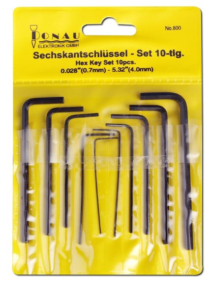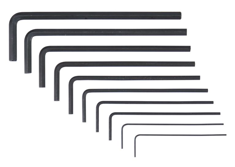 Serie chiavi a brugola da 10 pezzi eealizzati in acciaio al carbonio.