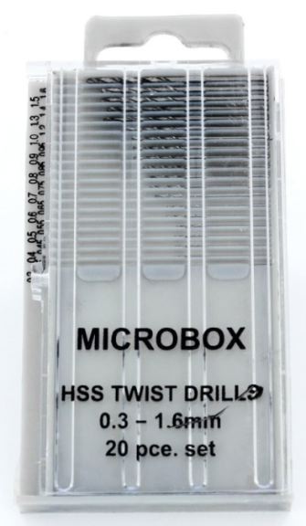 Punte da trapano in acciaio ad alta velocità da 0,3 a 1,6 mm in una pratica scatola di plastica con parte superiore scorrevole
