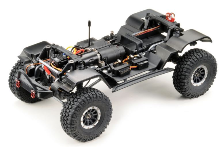 – Il sistema radio a 6 canali da 2,4 GHz ti offre il controllo totale del tuo veicolo: sistema di illuminazione , cambio a 2 velocità, differenzili bloccabili.