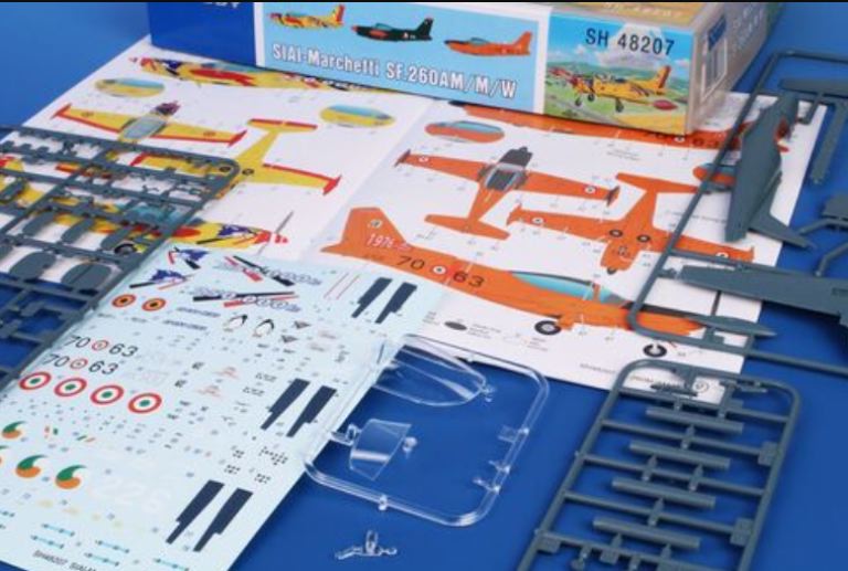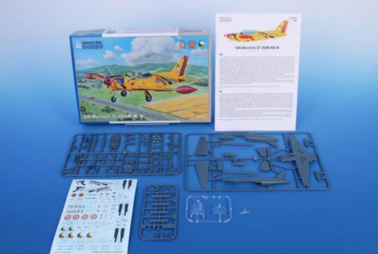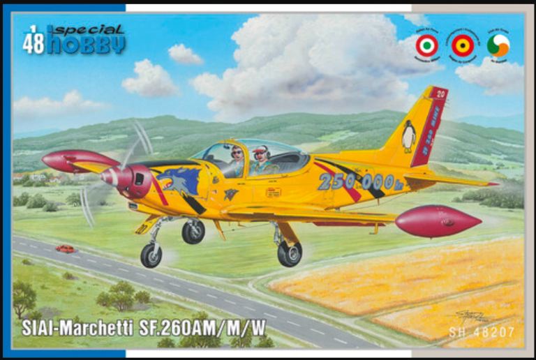 L’SF-260 è un aereo italiano da addestramento, sportivo e acrobatico che viene pilotato in praticamente tutto il mondo. Solo in Europa, può essere trovato in servizio con le forze aeree di Italia e Belgio ed è stato utilizzato anche dal Corpo Aereo Irlandese. Special Hobby ha già in offerta una riproduzione in scala 1/72 dellSF-260, ora stiamo anche rilasciando il suo cugino ingrandito in 1/48. Il kit include quattro sprue in polistirene, uno sprue trasparente con il vecchio tettuccio inferiore. Il foglio di decalcomanie contiene le marche per le versioni M, AM e W come volate in Italia, Belgio e Irlanda. I telai di seconda generazione SF-260EA/D con tettuccio bombato saranno disponibili più avanti.