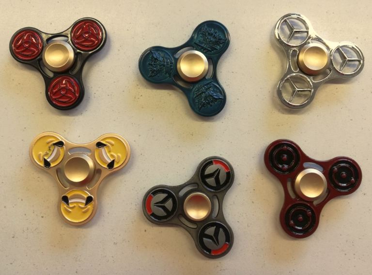 FInger Spinner Sign completamente in metallo con raffigurati 6 soggetti differenti.
