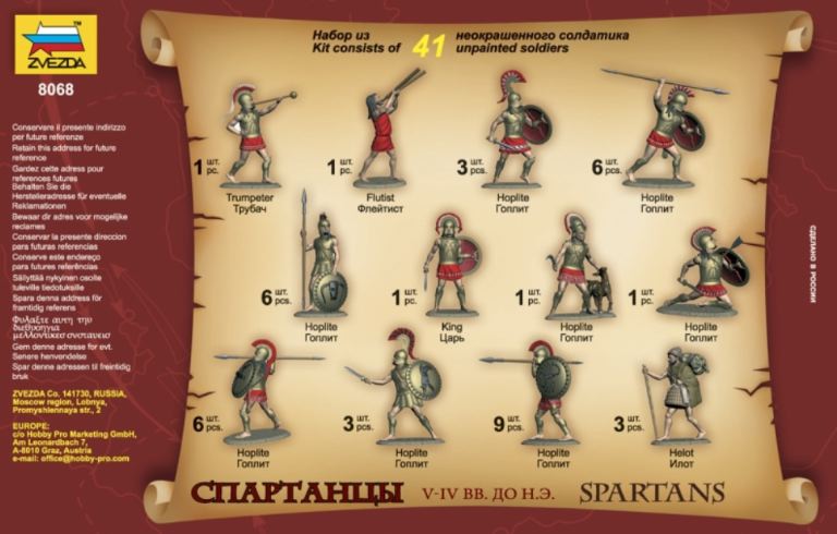 Nota storica: gli spartani combattevano a piedi ed erano fanteria pesante – opliti. Le loro armi e tattiche erano praticamente le stesse usate dalle vicine città-stato. La cosa principale che li distingueva era la loro eccellente capacità di combattere, raggiunta da un allenamento costante, una forza d’animo insuperabile e un atteggiamento sprezzante nei confronti della morte.